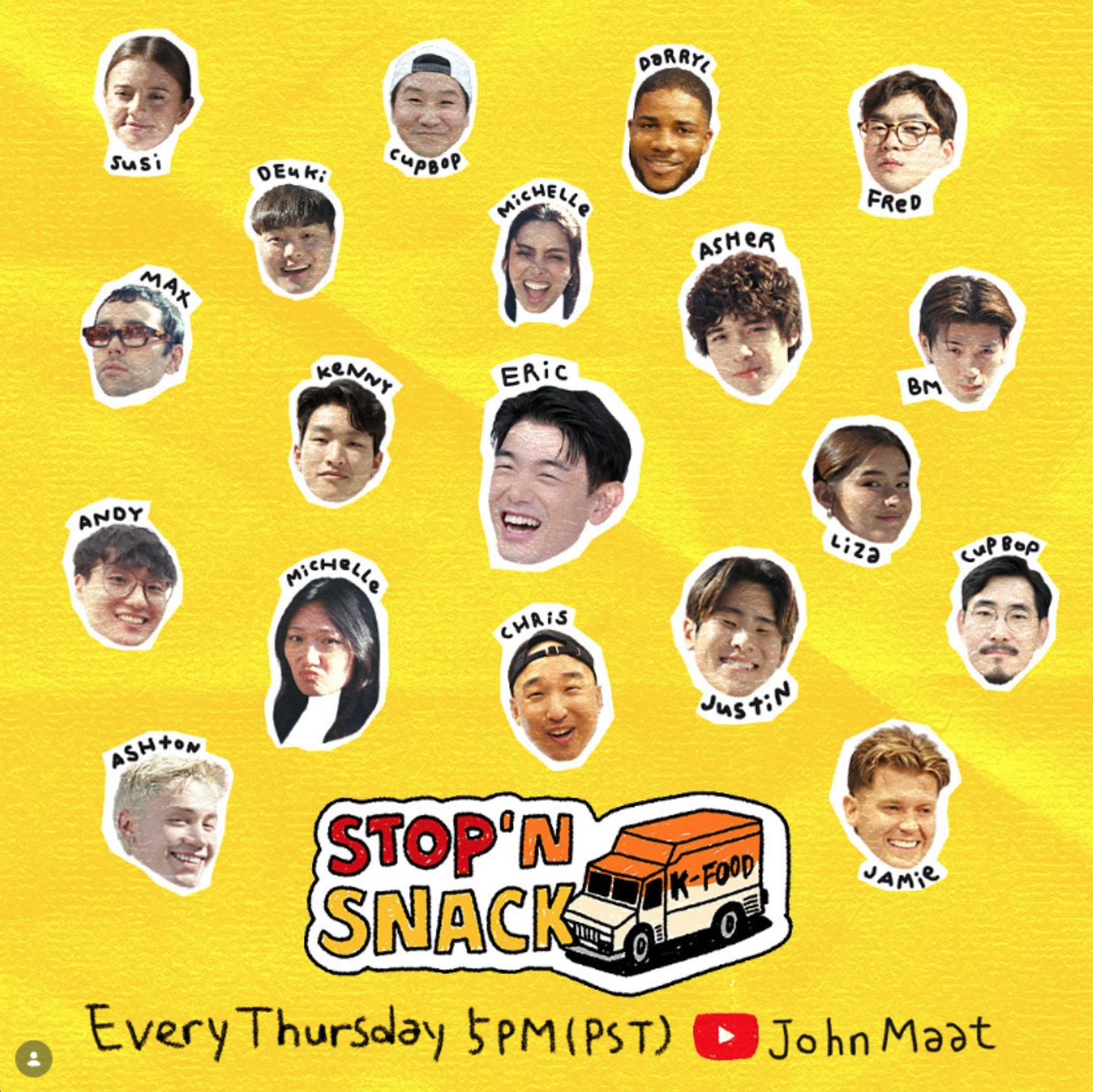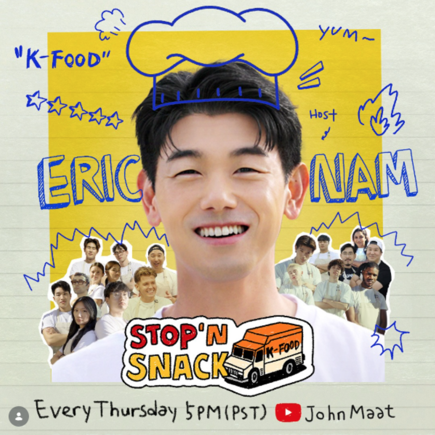 Stop N Snack is led by host Eric Nam, with a rotating lineup of chefs and special guests including Liza Soberano and Michelle Khare. Each episode brings a new school, new reactions, and a fresh set of personalities—while keeping a consistent production tone across multiple campuses.